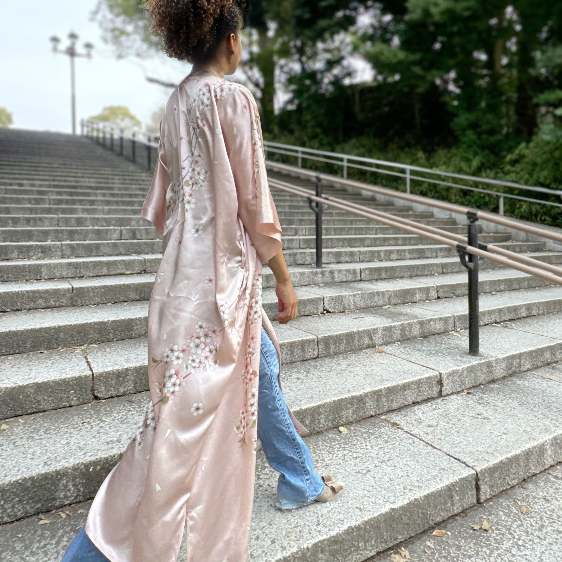 A Kimono Robe adorned with the sakura motif of ‘Yuzen’ kimono. A masterpiece filled with the craftsmanship of Japanese artisans, made from the finest 100% silk. Perfect for those moments when you just want to kick back and treat yourself right.